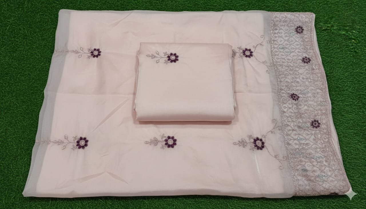 Folded Fabric: The smaller, folded piece also has a delicate floral motif embroidered on its surface.