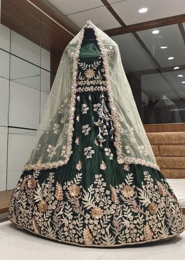 💚 Elegant Dark Green Georgette Lehenga 💚