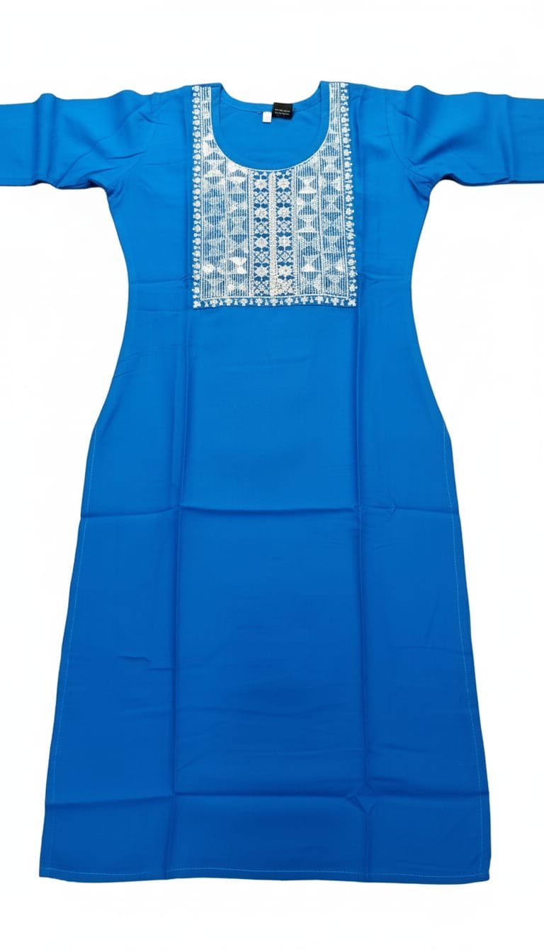 - Length: Appears to be a longer length, falling below the knee or possibly calf-length, making it suitable as a dress or traditional kurta.