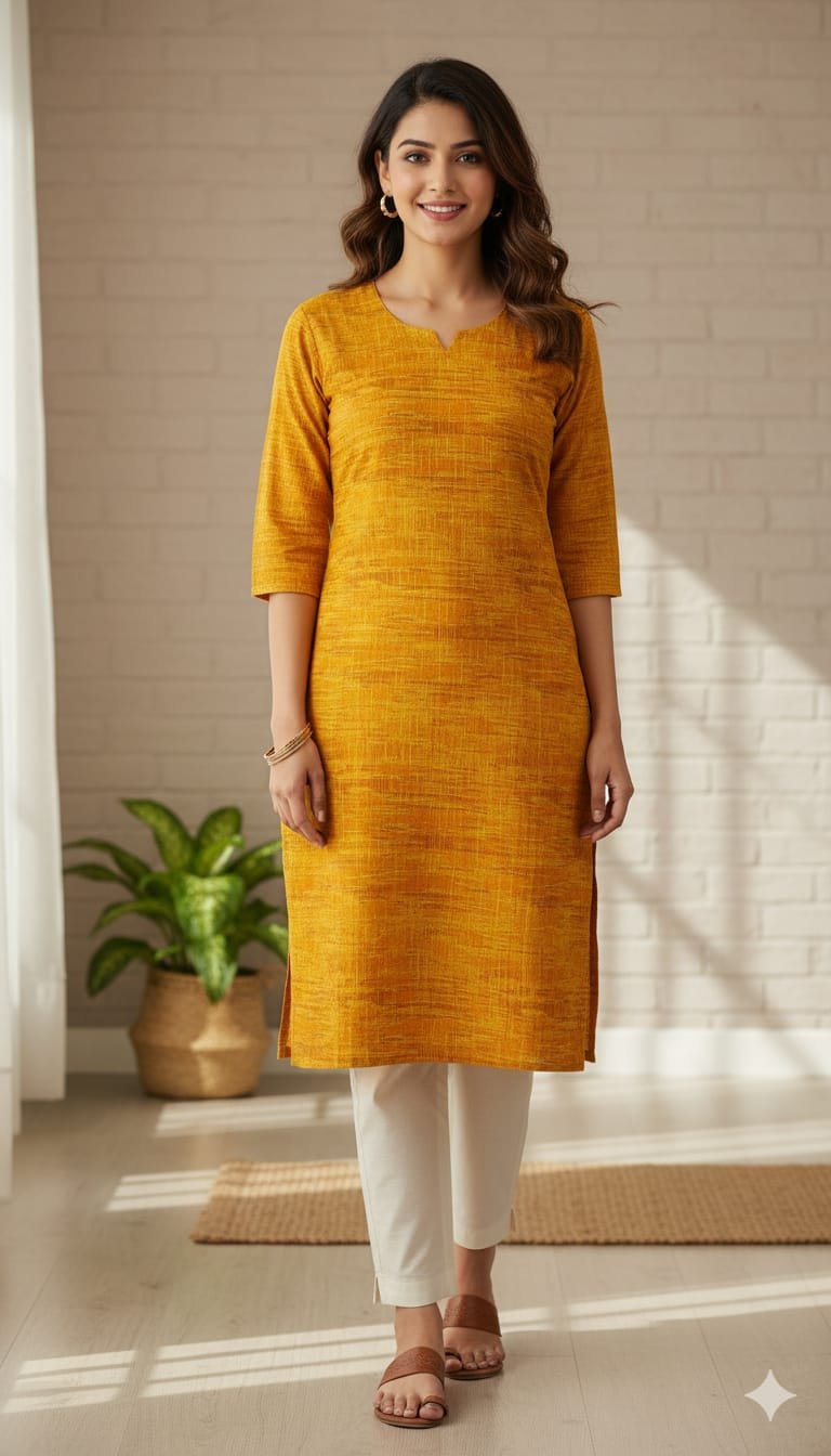 - Neckline: Simple round neck.