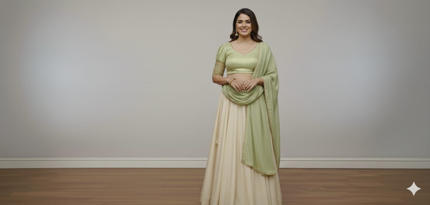 - Neckline: The front features a modest ‘V’ neckline, which is neatly trimmed with a thin golden zari border. The back neckline is a deep ‘U’ or scoop shape with a tie-up closure at the top, secured with cords and delicate, embroidered tassels that have scalloped edges.
