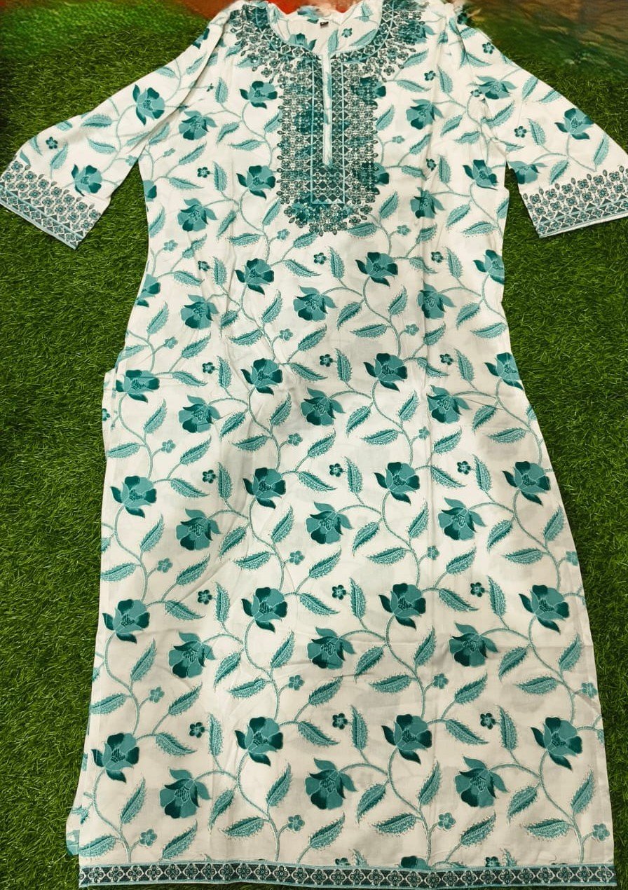 Teal Floral Cotton Kurti
