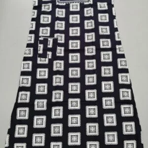 - Striking Print: The dress features a bold, classic black background contrasted with an all-over, repeating pattern of intricate white geometric squares that creates a sophisticated tiled effect.